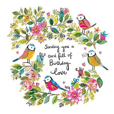 Wreath Of Coloured Birds Birthday Card